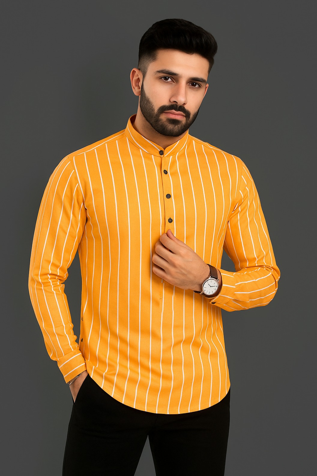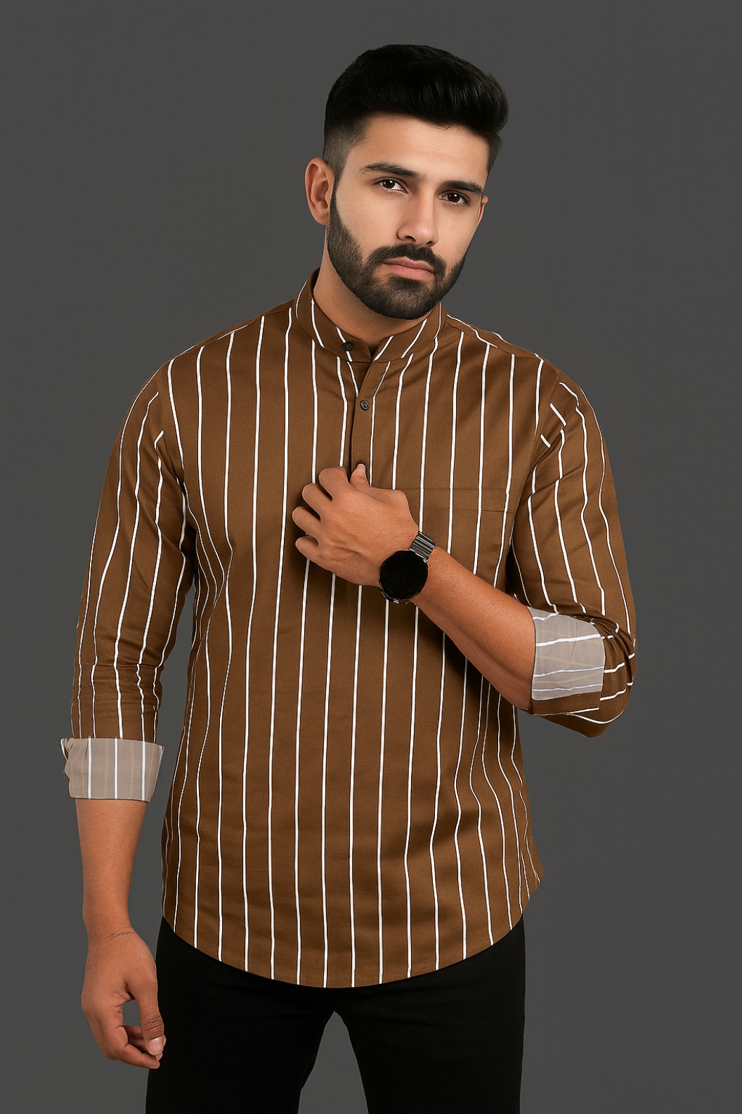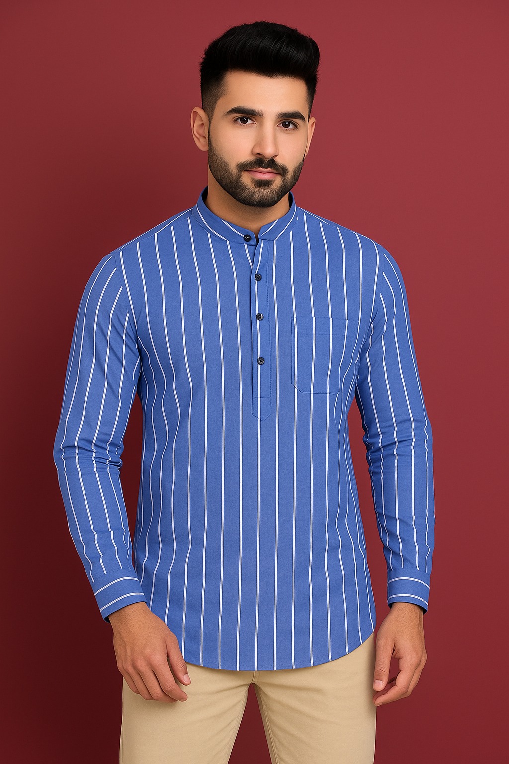 কলার: ম্যান্ডারিন বা চাইনিজ কলার (Band Collar), যা একটি আধুনিক এবং ক্লিনি লুক দেয়।